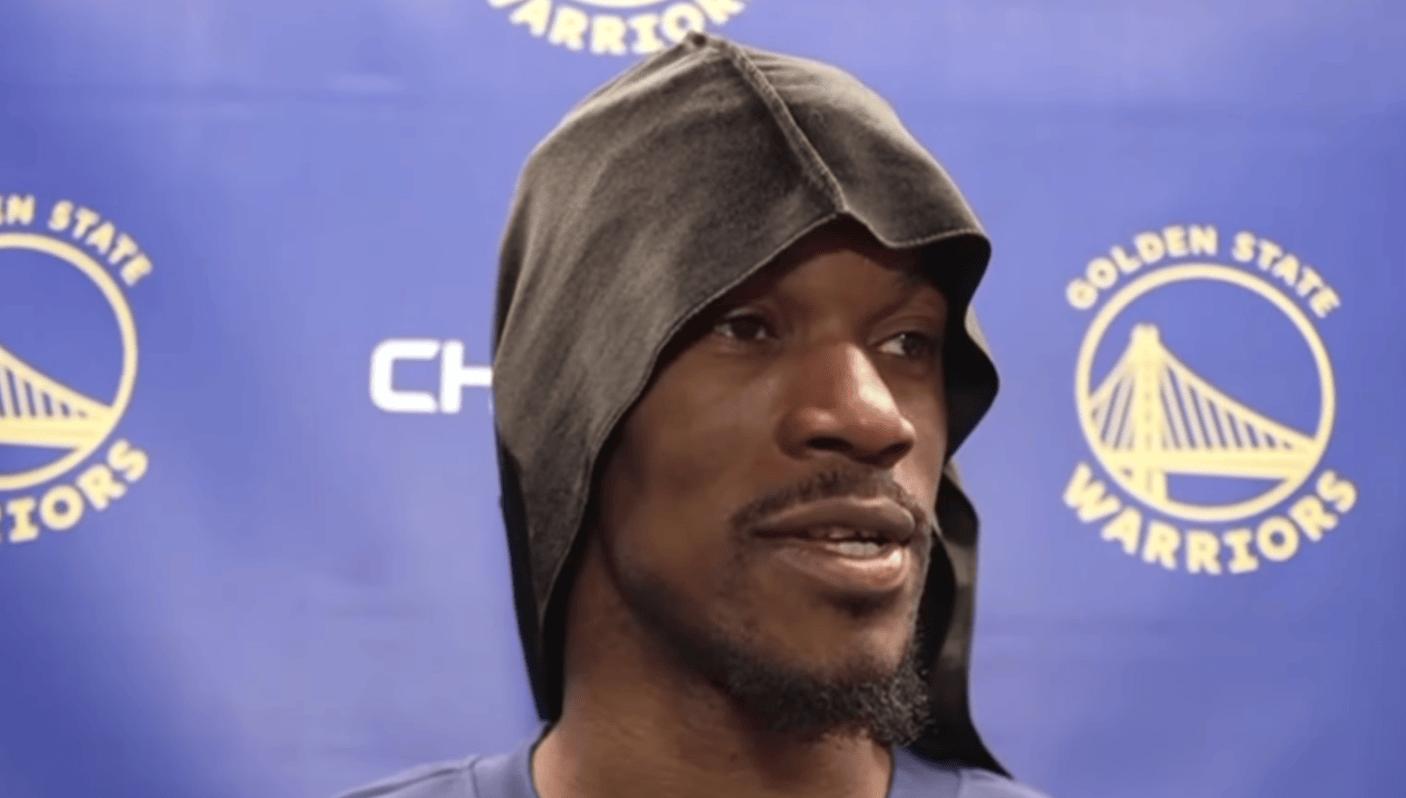 赛后,勇士球员吉米-巴特勒接受媒体采访。